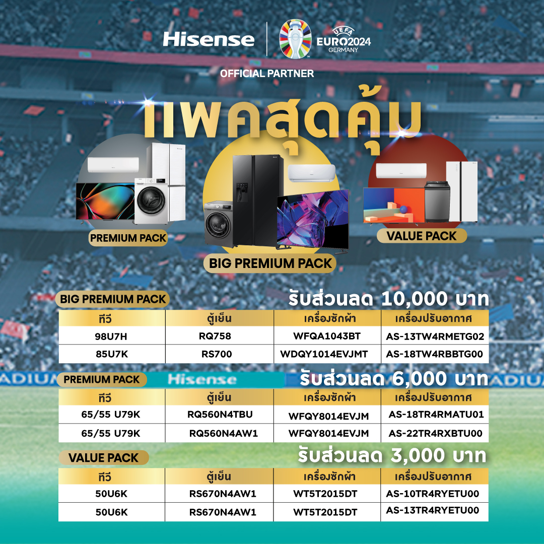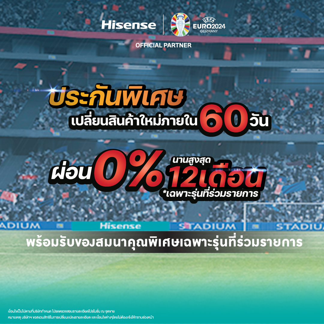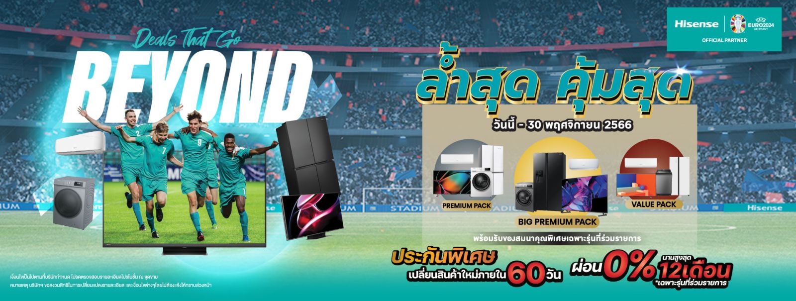 Hisense “Deals That Go Beyond” เเคมเปญที่จะให้คุณได้ช้อปสุดคุ้มรับการมาของการเเข่งขัน EURO2024ในฐานะที่ Hisense เป็น Official Partner ของการเเข่งขันดังกล่าว เราเตรียมให้คุณได้มาช้อปกัน