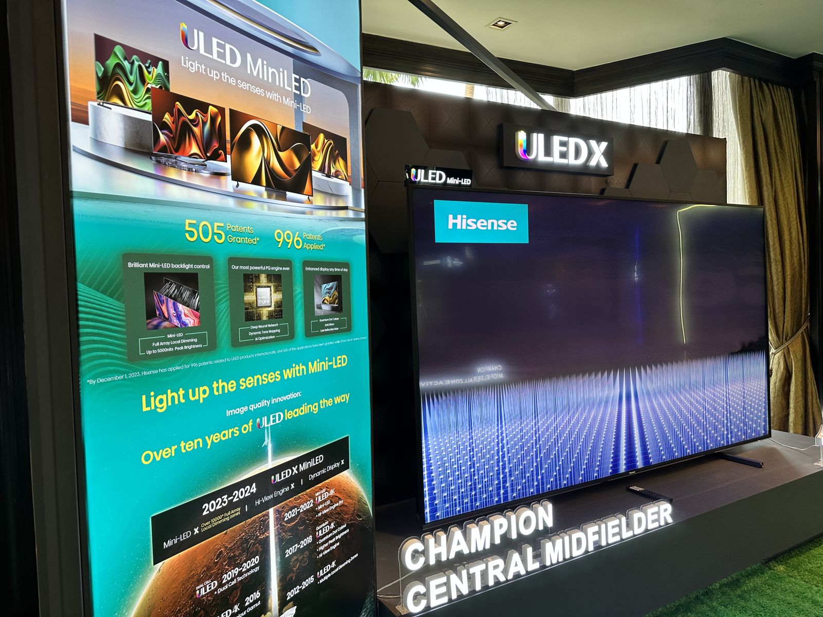ในเดือนเมษายน Hisense จัดการประชุมกลุ่มลูกค้าในภูมิภาคอาเซียนปี 2024 อย่างยิ่งใหญ่ที่กรุงเทพฯ ประเทศไทย โดยได้เปิดตัวทีวี 100 นิ้ว 100U7 ใหม่ และสาธิตความแข็งแกร่งและความมั่นใจในยุคของคุณภาพภาพที่สมบูรณ์แบบ การประชุมครั้งนี้ ภายใต้ธีม "ความรุ่งโรจน์ของสถานการณ์ที่นำไปสู่ความสำเร็จร่วมกัน" ดึงดูดพันธมิตรเกือบ 400 รายจากประเทศไทย มาเลเซีย อินโดนีเซีย เวียดนาม ฟิลิปปินส์ และประเทศอื่นๆ มารวมตัวกันที่แชงกรี-ลา เพื่อเป็นพยานการเปิดตัวกลยุทธ์ใหม่ปี 2024 ของ Hisense และสัมผัสประสบการณ์ที่หลากหลายจากผลิตภัณฑ์ใหม่