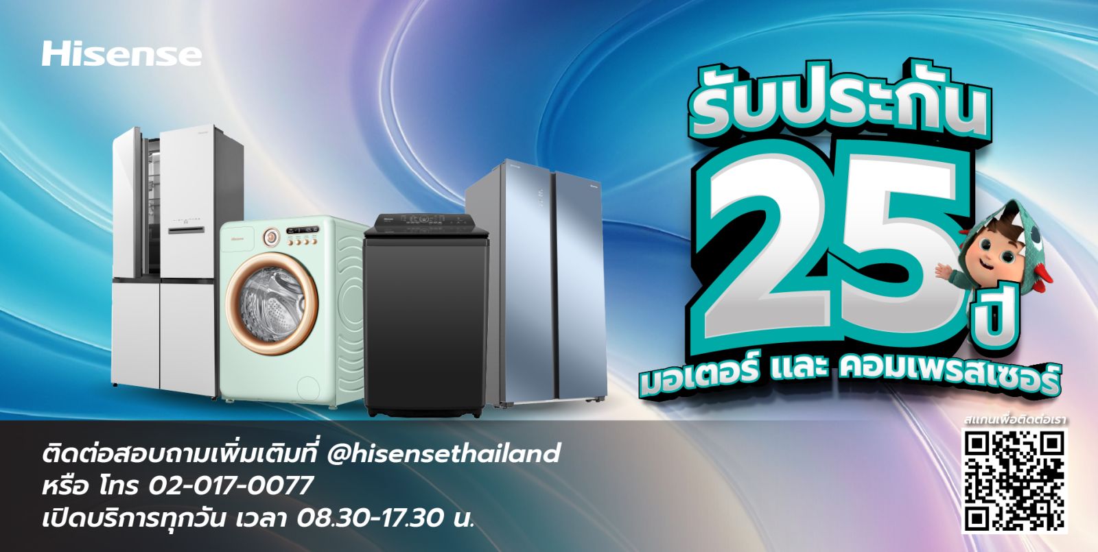 Hisense ยกระดับการรับประกัน ขยายความคุ้มครองมอเตอร์เครื่องซักผ้าและคอมเพรสเซอร์ตู้เย็นนาน 25 ปี ทุกรุ่นอินเวอร์เตอร์