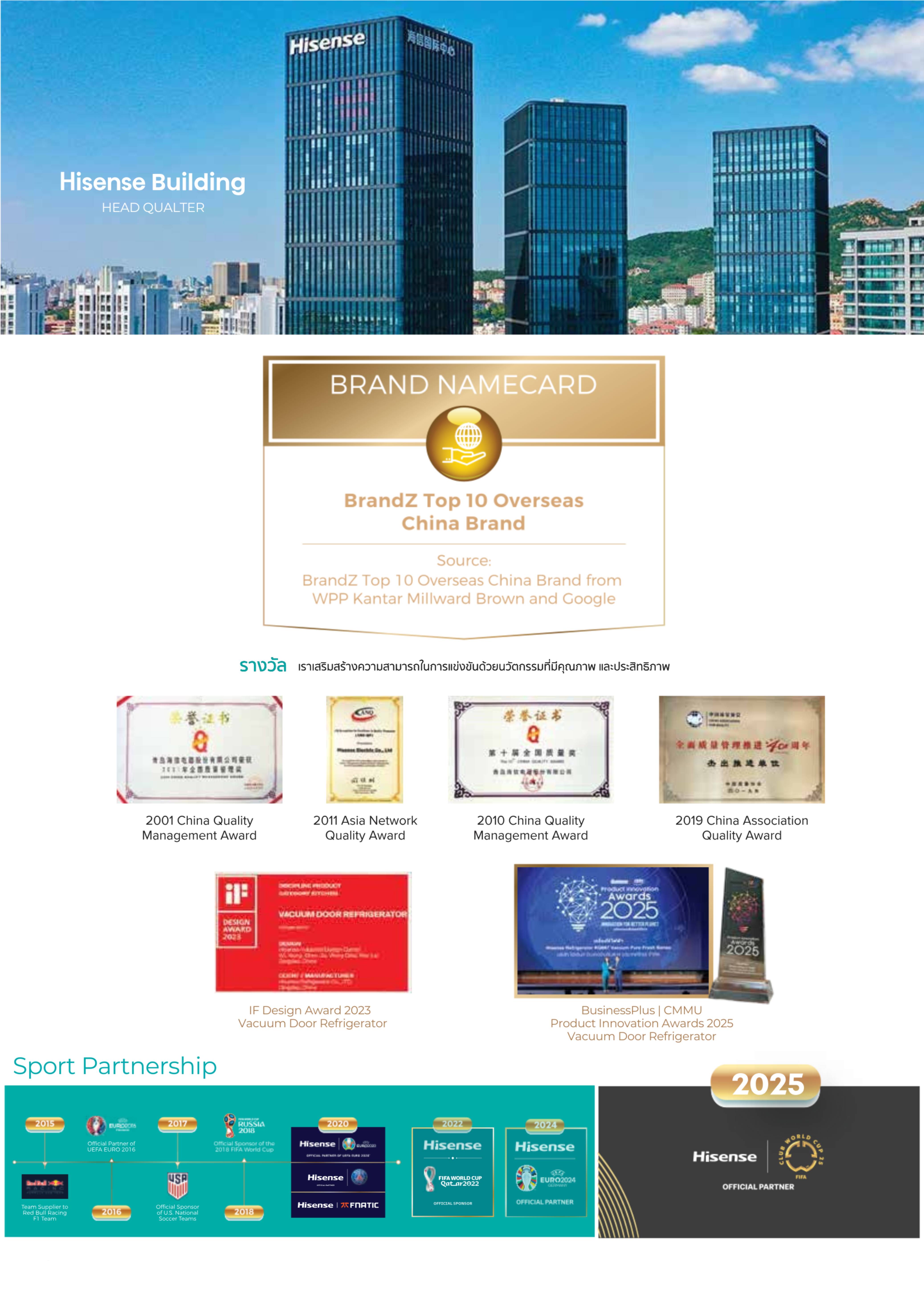 Hisense ก่อตั้งขึ้นในปี 1969 โดยมีสำนักงานใหญ่ตั้งอยู่ที่เมืองชิงเต่า สาธารณรัฐประชาชนจีน เป็นบริษัทเทคโนโลยีชั้นนำระดับโลกที่มุ่งเน้นการพัฒนาด้านสมาร์ททีวี เครื่องใช้ในครัวเรือน และอุปกรณ์สื่อสารเคลื่อนที่ โดยมีวิสัยทัศน์ในการส่งมอบประสบการณ์ชีวิตที่ดียิ่งขึ้นผ่านนวัตกรรมและเทคโนโลยีอัจฉริยะ