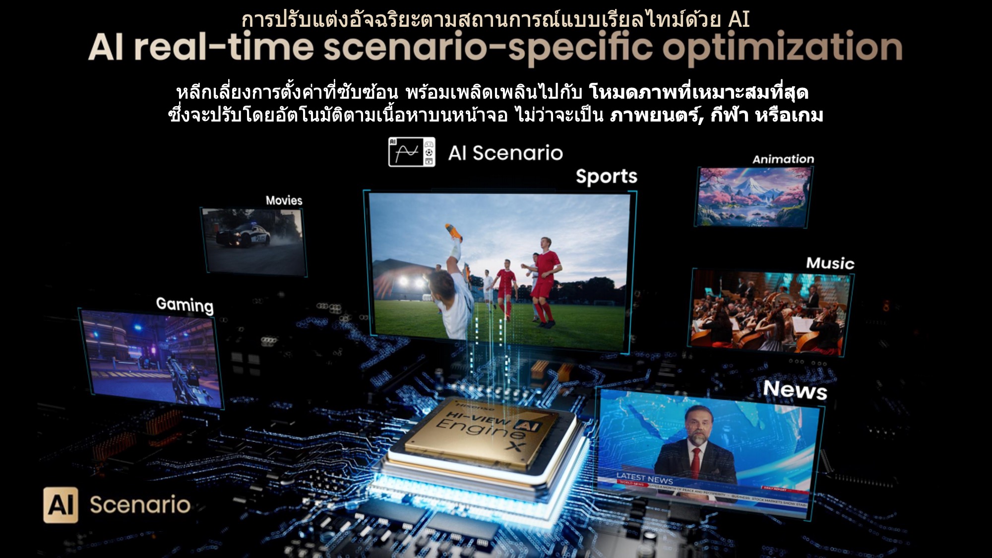 -Hi-View AI Engine : ปรับภาพ/เสียงอัตโนมัติให้เหมาะกับตอนเทนต์และแสงแวดล้อม