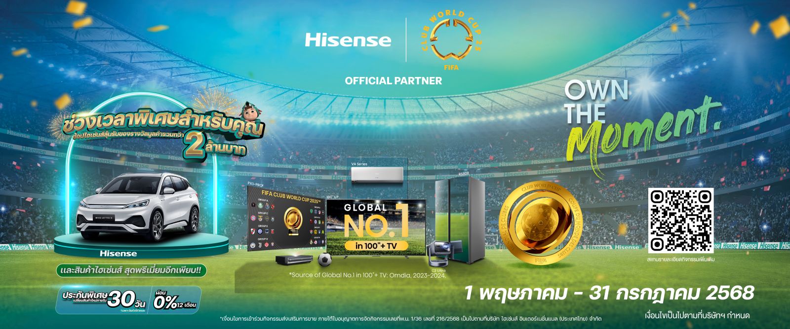- Participant data is the property of Hisense (Thailand) Co., Ltd. The Company reserves the right to collect, use, disclose, or transfer personal information (e.g., name, phone number, address, etc.) for campaign purposes, in accordance with the Personal Data Protection Act B.E. 2562 (PDPA).