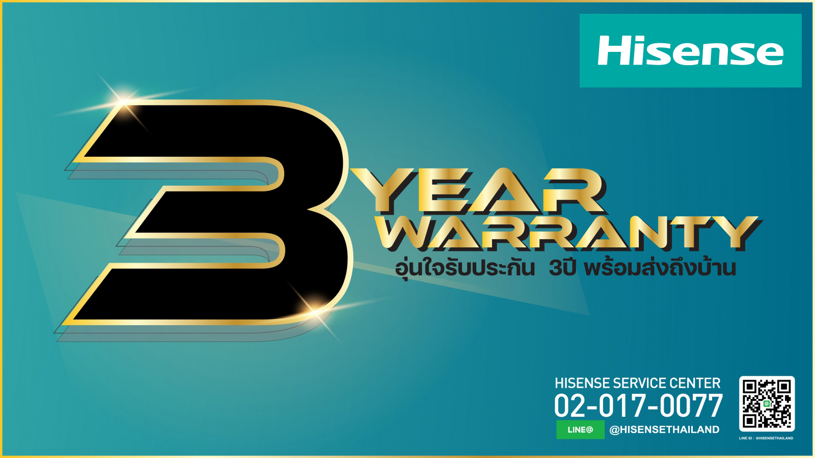 มั่นใจทุกการใช้งาน ด้วยการรับประกันจาก Hisense รับประกันนาน 3 ปีเต็ม